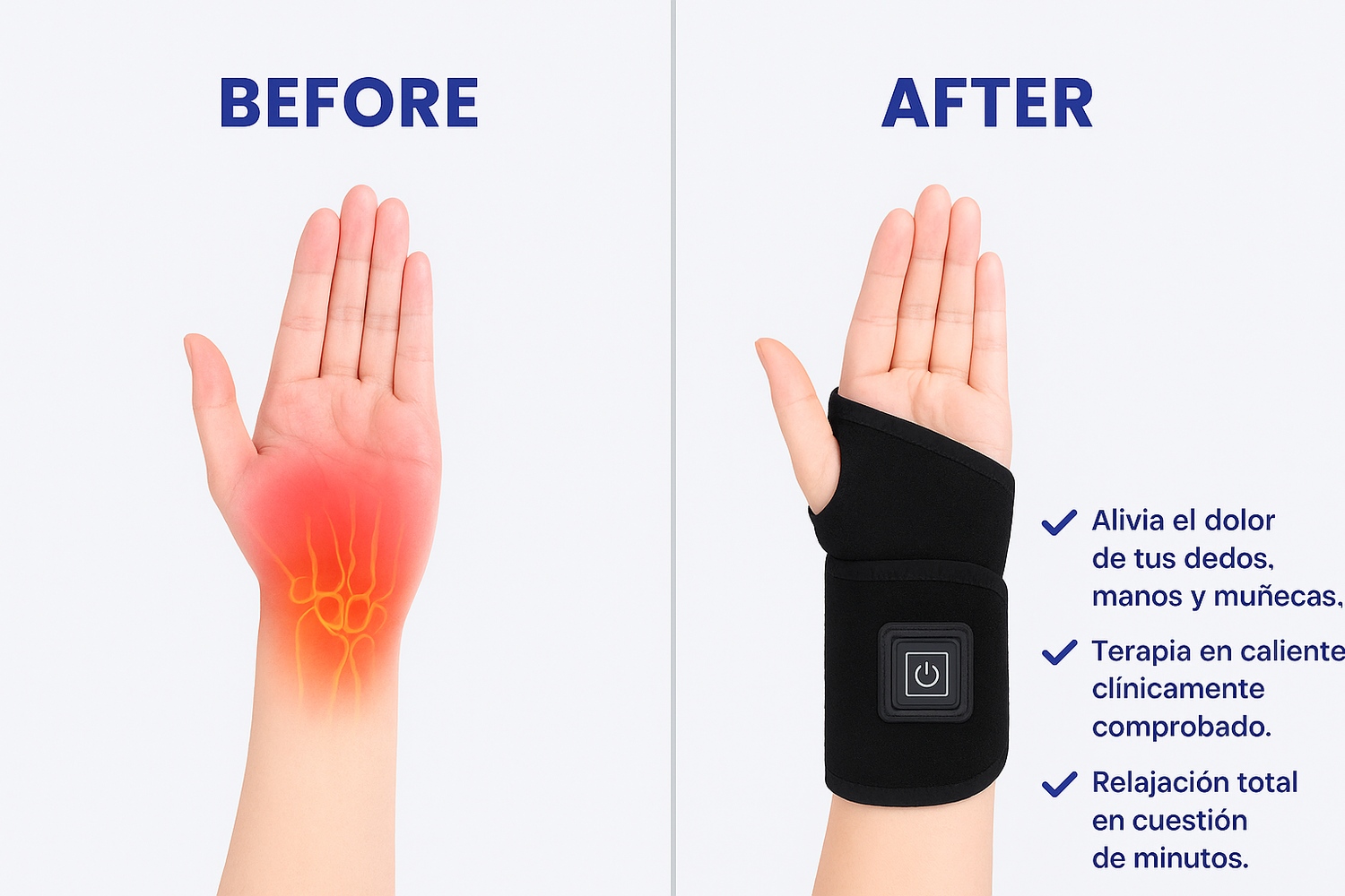 La Muñequera TermaPro está diseñada para aliviar el dolor, relajar la tensión y darte bienestar en minutos. Con su tecnología de calor terapéutico, reduce la inflamación y mejora la circulación, devolviéndote la movilidad y la tranquilidad que mereces.